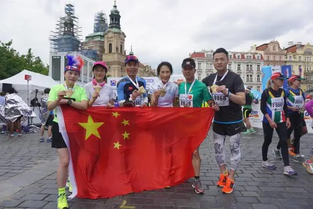 五星红旗成了布拉格马拉松当日最美丽而又醒目的中国元素。