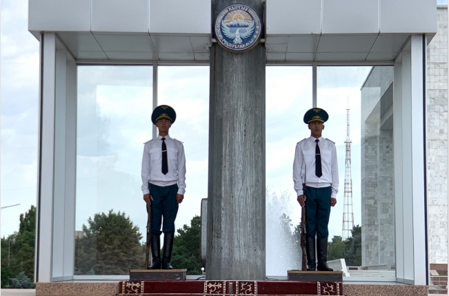 △阿拉套广场上的卫兵。(央视记者张淳拍摄)