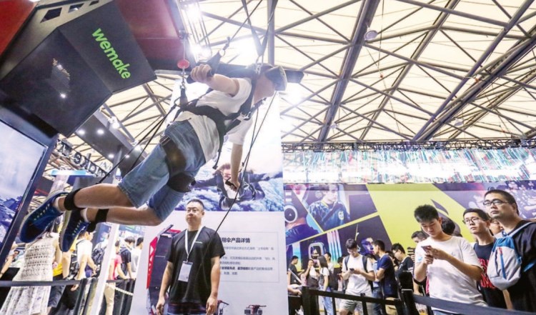 观众在中国国际数码互动娱乐展览会现场体验VR游戏。本报记者 叶辰亮 摄