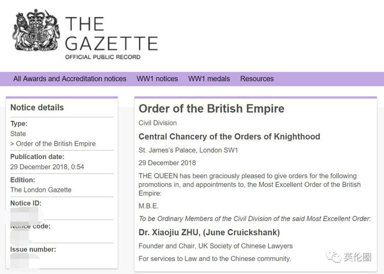 这一次,无关出身背景,朱小久用自己的专业和奉献获得了自己专属的勋章。4月4日,身穿传统中式旗袍的朱小久在白金汉宫亲自从查尔斯王子手中接过英国女王授予的大英帝国员佐勋章MBE。