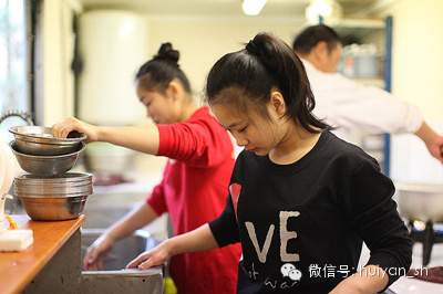 伙头军沈老师穿上白大褂就是厨师,脱下白大褂就是大跳板节目的教练。全靠了沈老师的一手好厨艺,39位演员不仅“饭来张口”,而且吃得满意。不过,生活在这个大家庭里,每个人都有自己的义务。洗碗、打扫等活计就是轮流值日。好在我们杂技团的小伙伴们自理能力极强,三下五除二,厨房便光可鉴人,像什么都没发生过一样~~