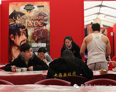 其实,演员们住在距离帐篷所在地步行距离约10分钟的旅馆里,每天早晨7点就到帐篷里来练功、搭台,调试,吃午饭。下午3点演出一场,然后拆台,吃晚饭,再练功,再化妆,晚上8点再演出一场。在观众热情最为高涨的圣诞前后,大约有1个月时间,早上10点还要加演一场。老话说,台上一分钟,台下十年功,拳不离口,曲不离手,业荒于嬉而兴于勤,等等。一点没错。